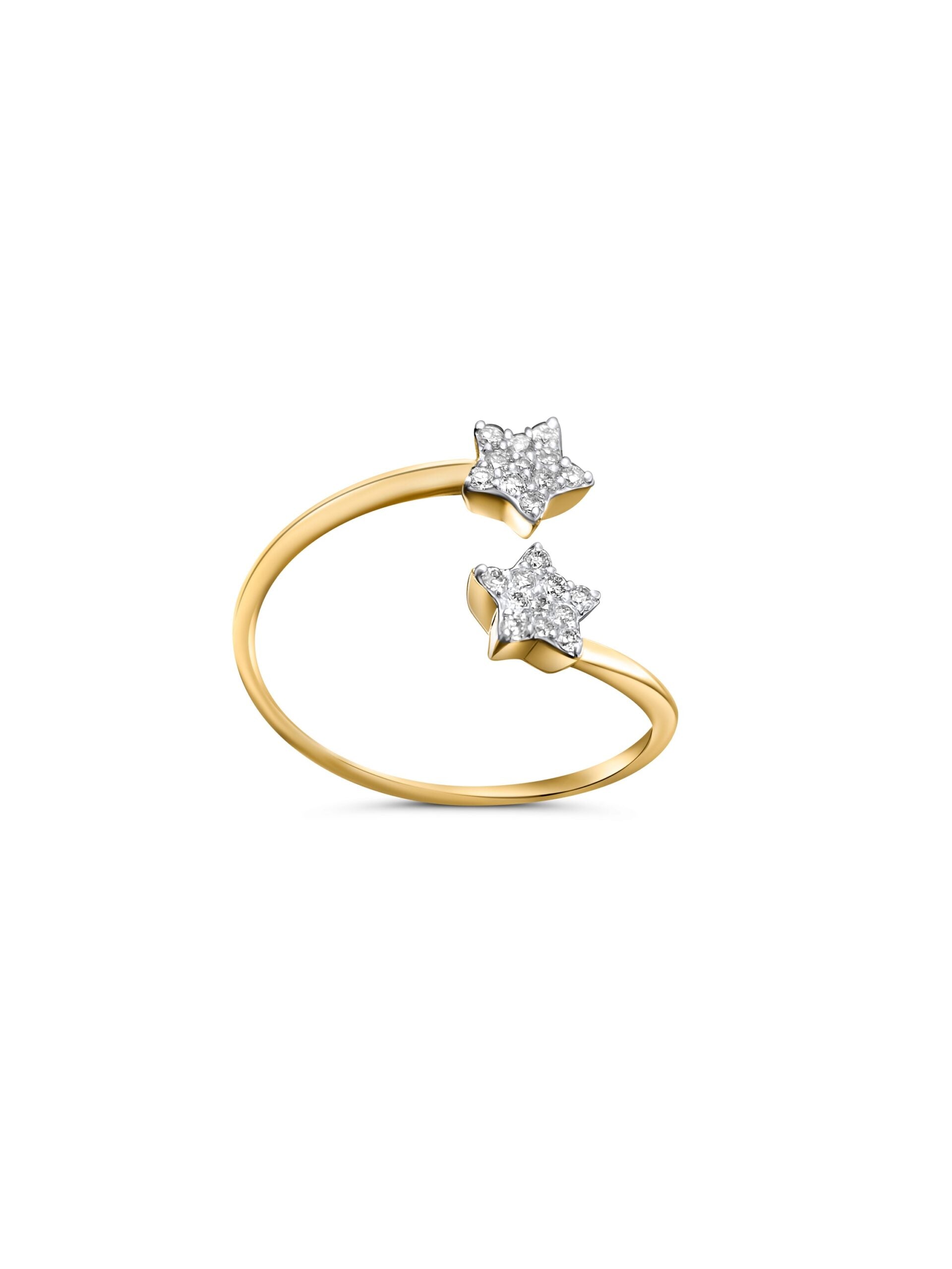 18k gold and diamond ring, adorned with two captivating stars. This stunning piece is crafted with the utmost precision and elegance, making it a true symbol of luxury and sophistication